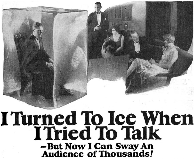 "I turned to ice when I tried to talk."  From Popular Mechanics, 1928.