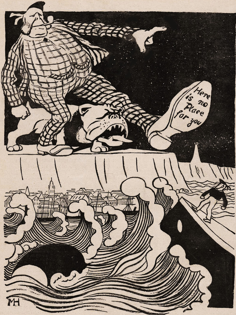 "Here is no place for you."  From Jugend, 1909.