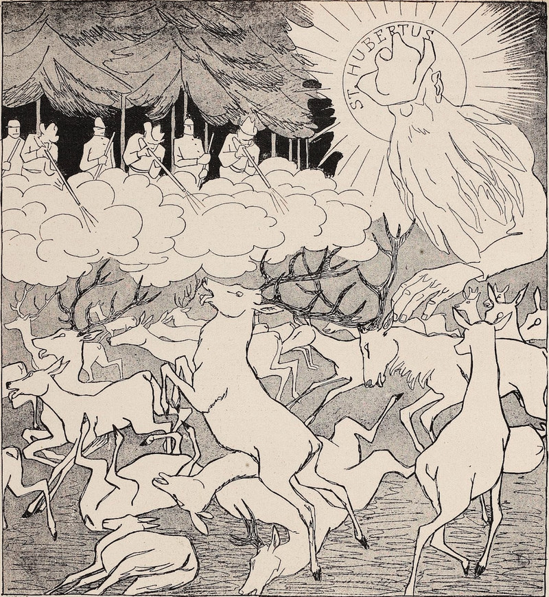 The patron saint of (so-called ethical) hunting.  From Jugend, 1909.