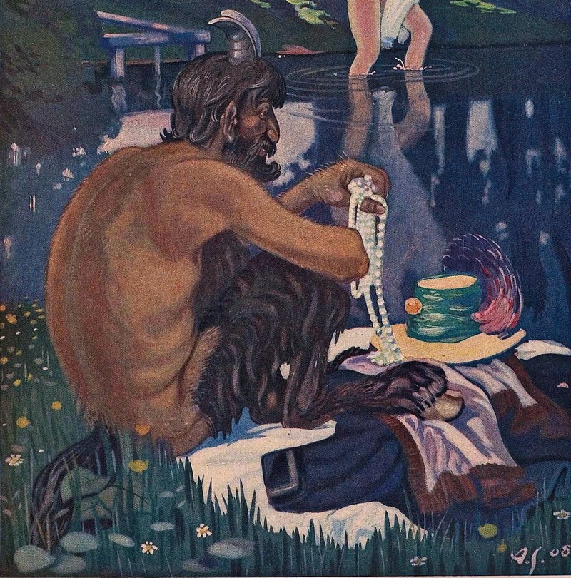 #vintage illustration #mythology #satyr #faun #lakeside #illustration #art