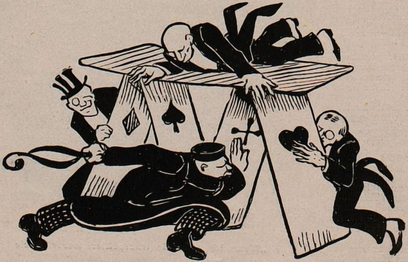 #vintage illustration #playing cards #tiny men #illustration #house of cards #art