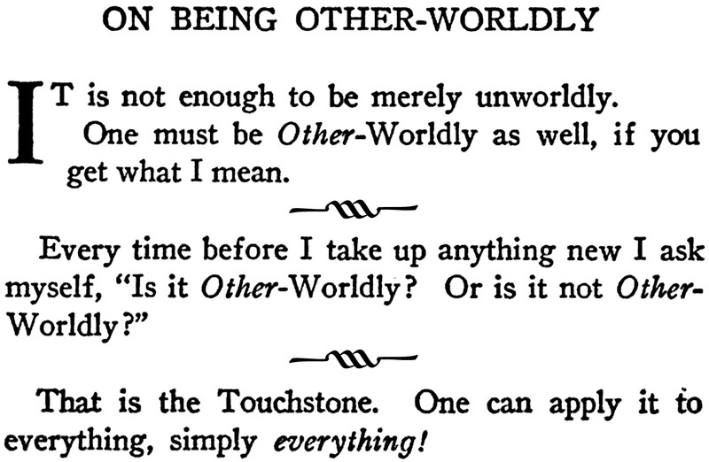 Other-Worldly?' That is the Touchstone. One can apply it to everything, simply