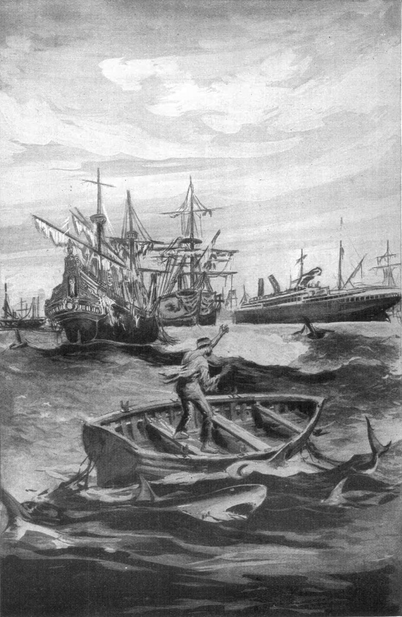 #vintage illustration #boat #illustration #sharks #art