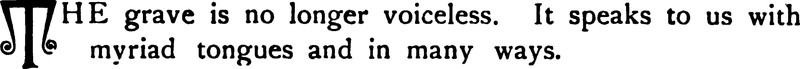 "The grave is no longer voiceless.  It speaks to us with myriad tongues and in many ways."  From Psychography: Marvelous Manifestations of Psychic Power by James J. Owen, 1893.