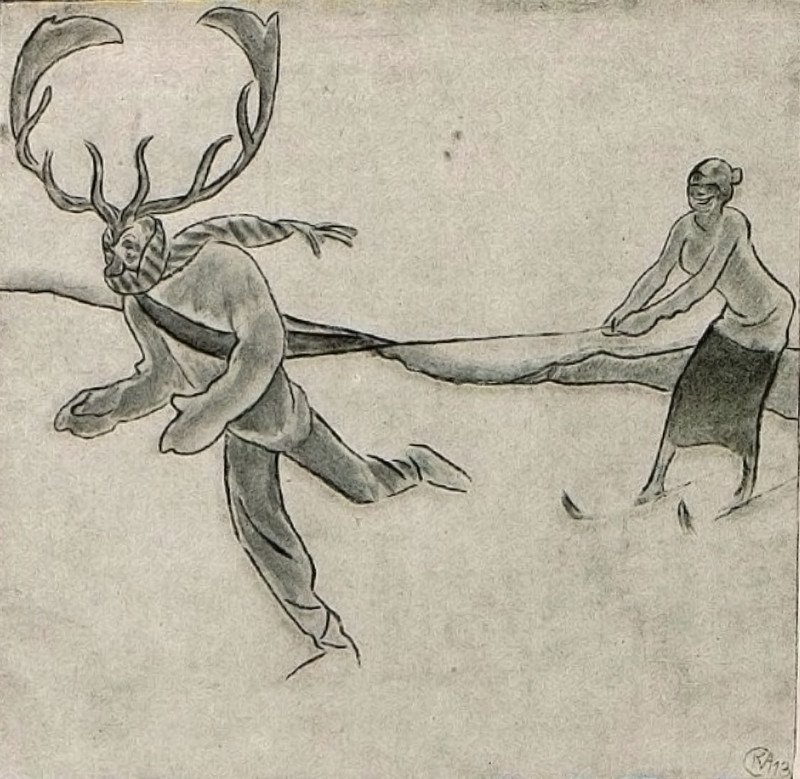 #vintage illustration #horns #antlers #illustration #skiing #man with horns