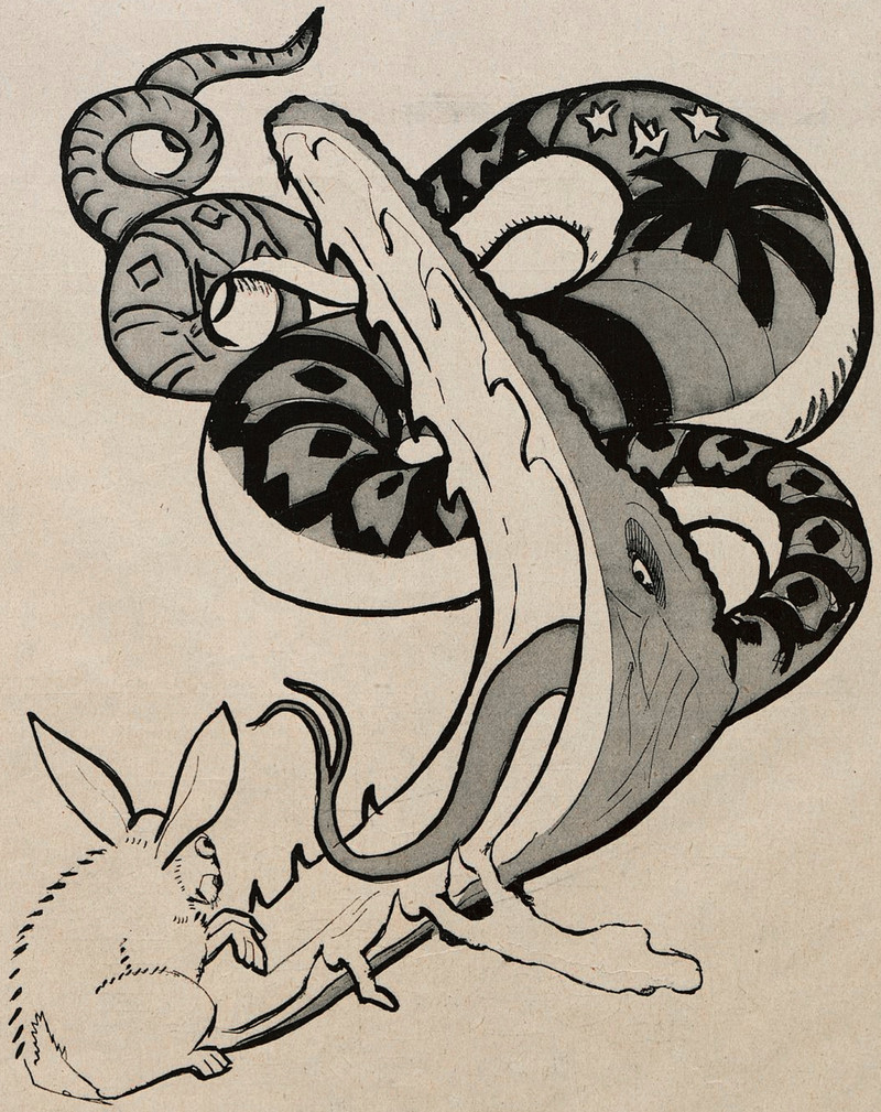 #vintage illustration #serpent #rabbit #1920s #illustration