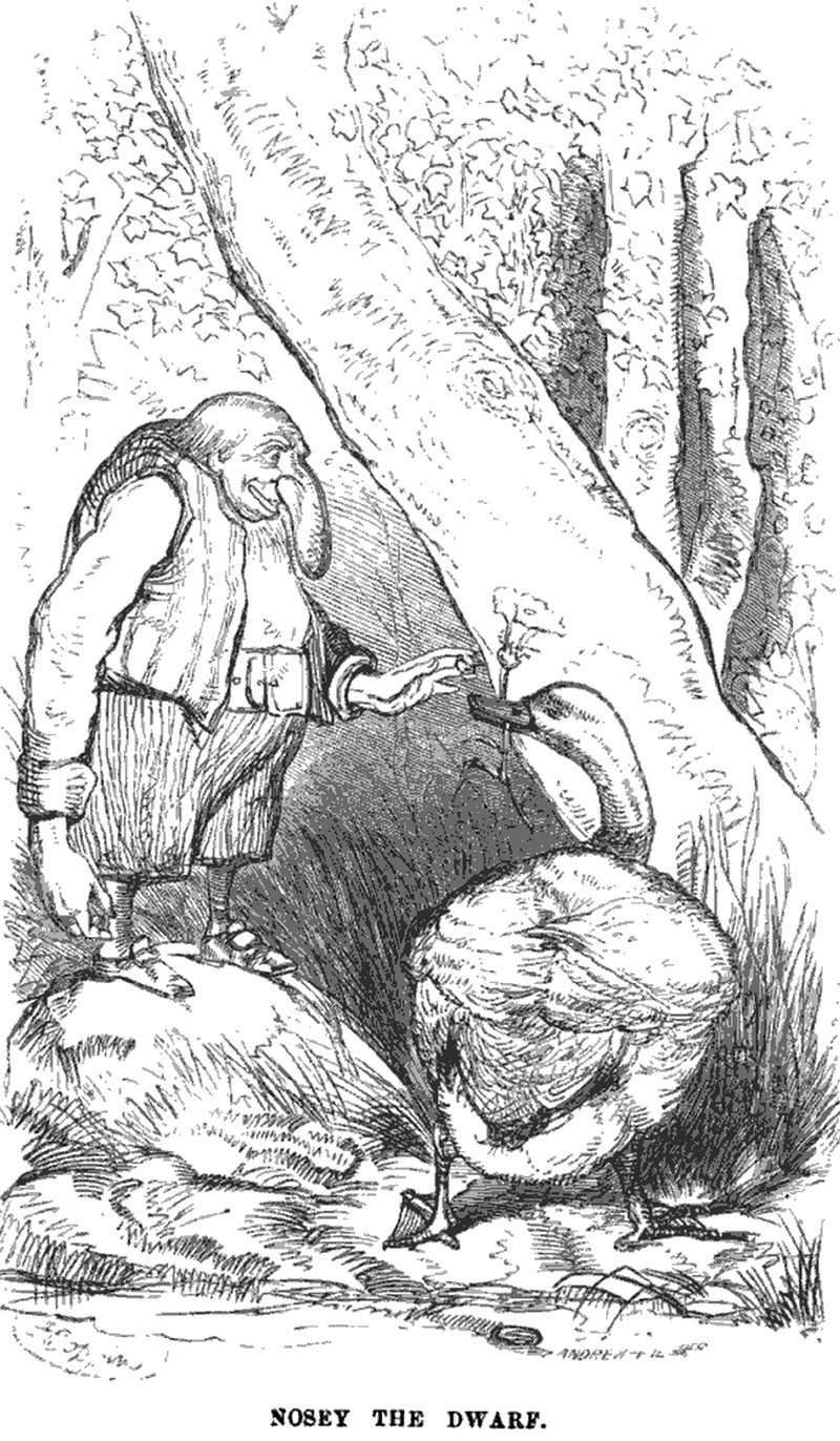 "Nosey the dwarf," from Arabian Days' Entertainments by Wilhelm Hauff, 1858.