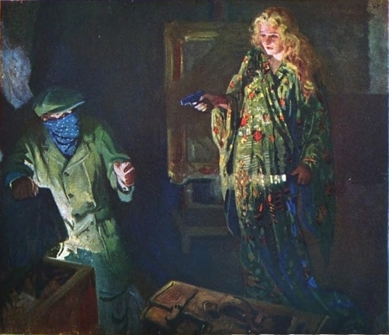 #vintage illustration #gun #burglar #armed woman #illustration #woman with gun