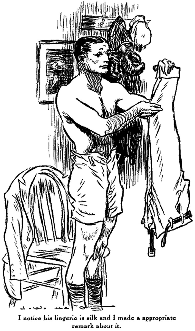 Make an appropriate remark about his silk lingerie.  From Cosmopolitan, 1922.