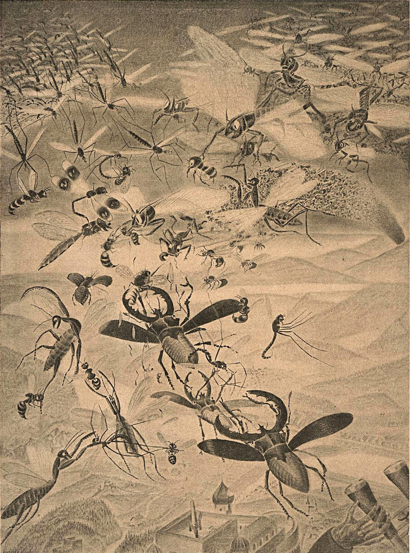 #vintage illustration #plague #insects #swarm #illustration #pestilence