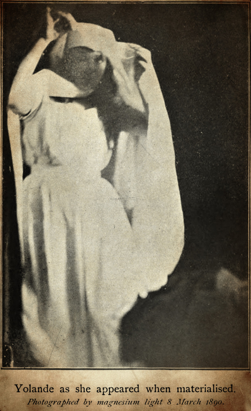 "Yolande as she appeared when materialised."  From Shadow Land or Light from the Other Side by E. d' Espérance. 1897.