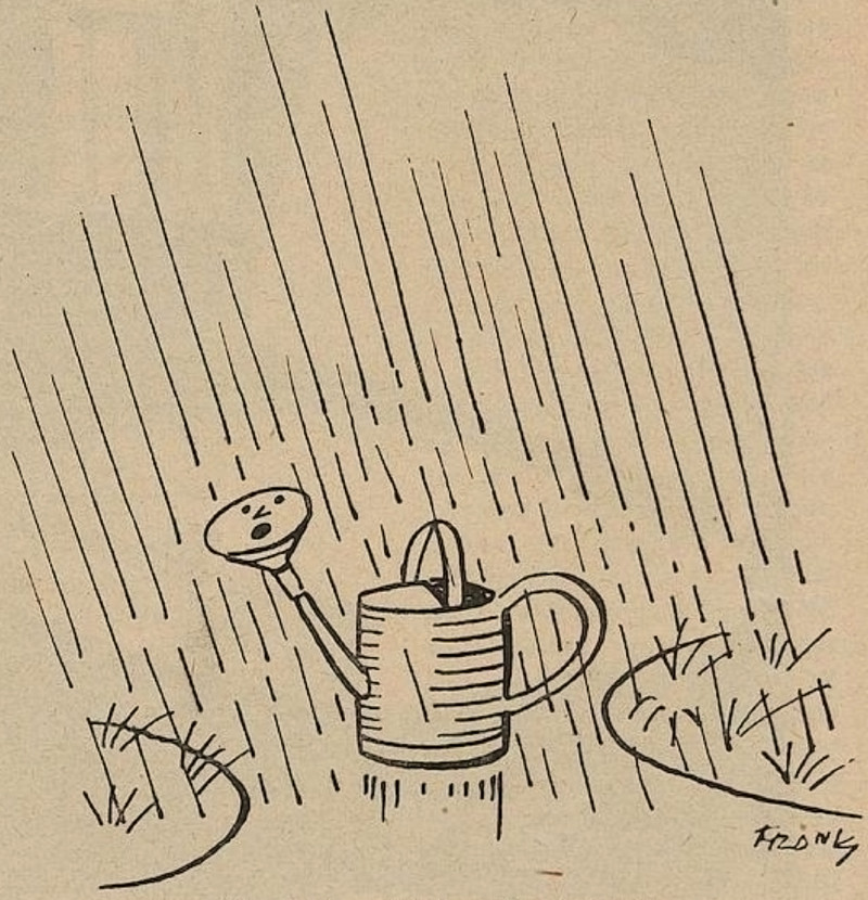 #vintage illustration #anthropomorphism #rainy day #faces in things #illustration #watering can