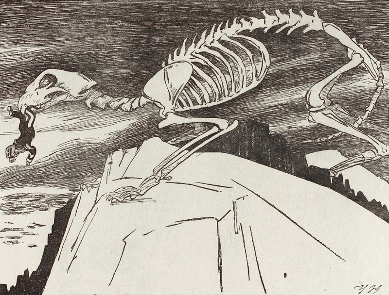 #vintage illustration #horror #giant skeleton #illustration #skeleton monster