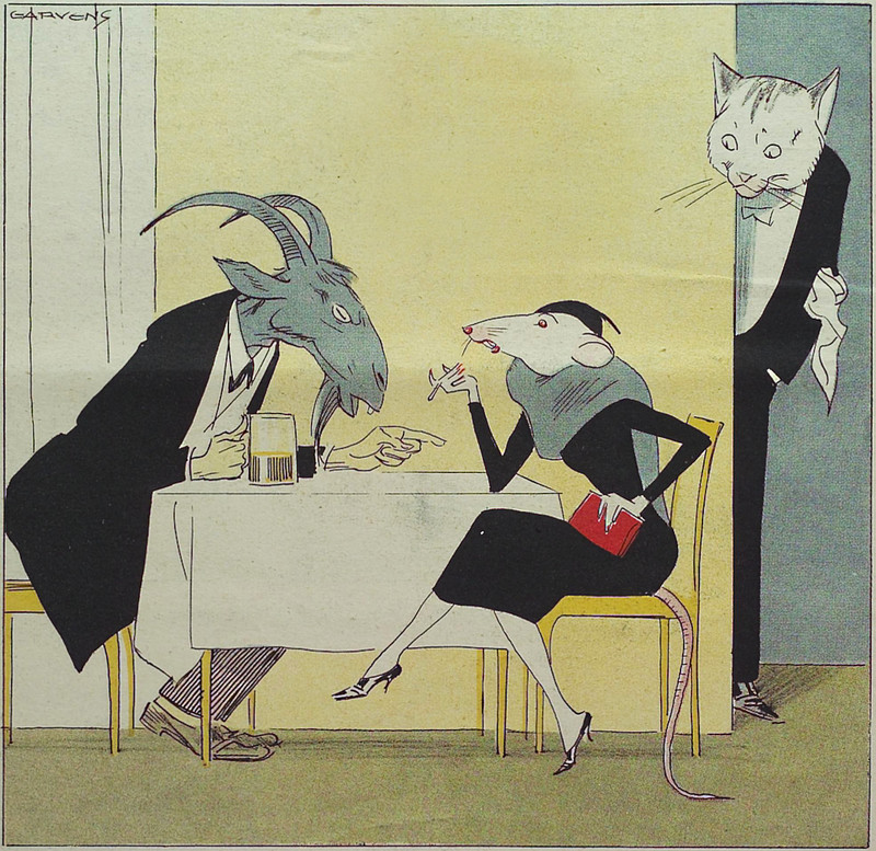 #vintage illustration #anthropomorphism #cat #goat #mouse