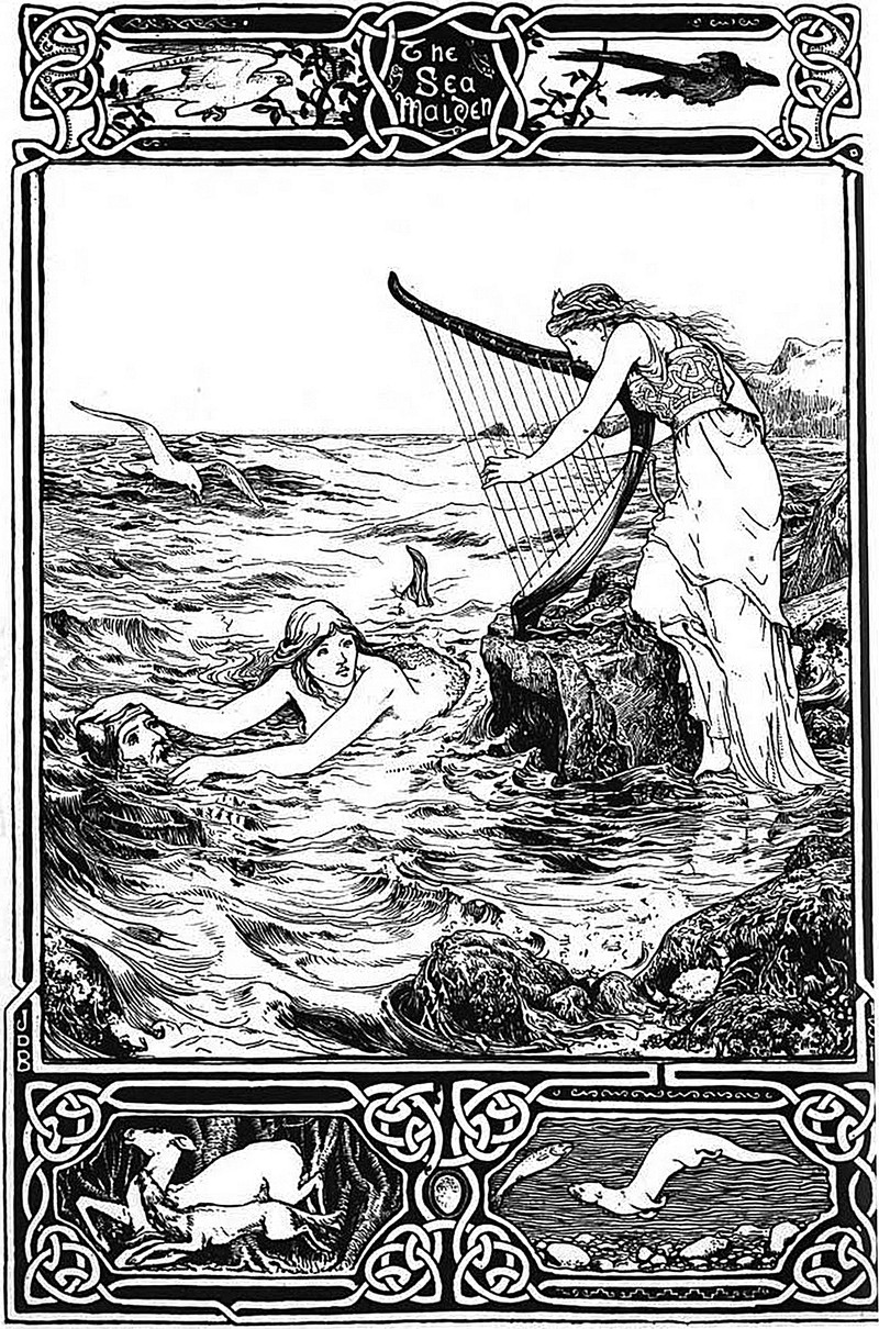 The sea maiden, from Celtic Fairy Tales, selected by Joseph Jacobs and illustrated by John D. Batten, 1892.