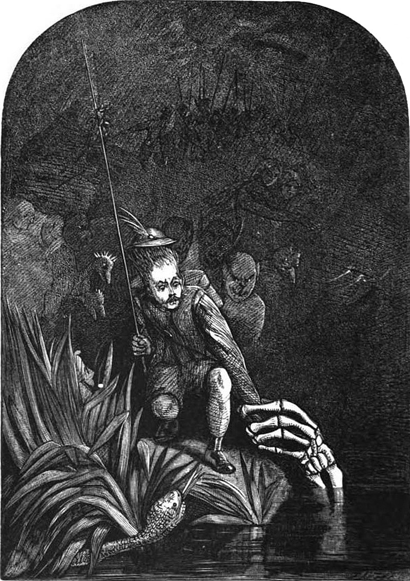 #vintage illustration #demon #skeleton #fairy tale #giant hand #horror #illustration #skeleton hand
