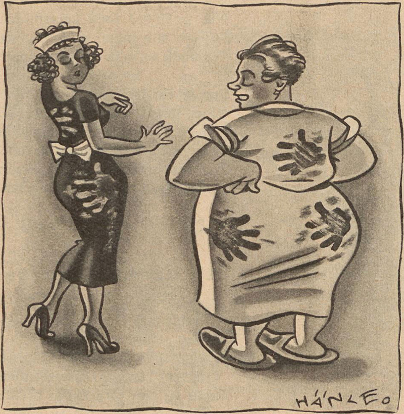 Here's a precusor to the Fawlty Towers episode "The Psychiatrist," from Fliegende Blätter, 1935.  Previously, we discovered this other vintage handprint fashion statement.
