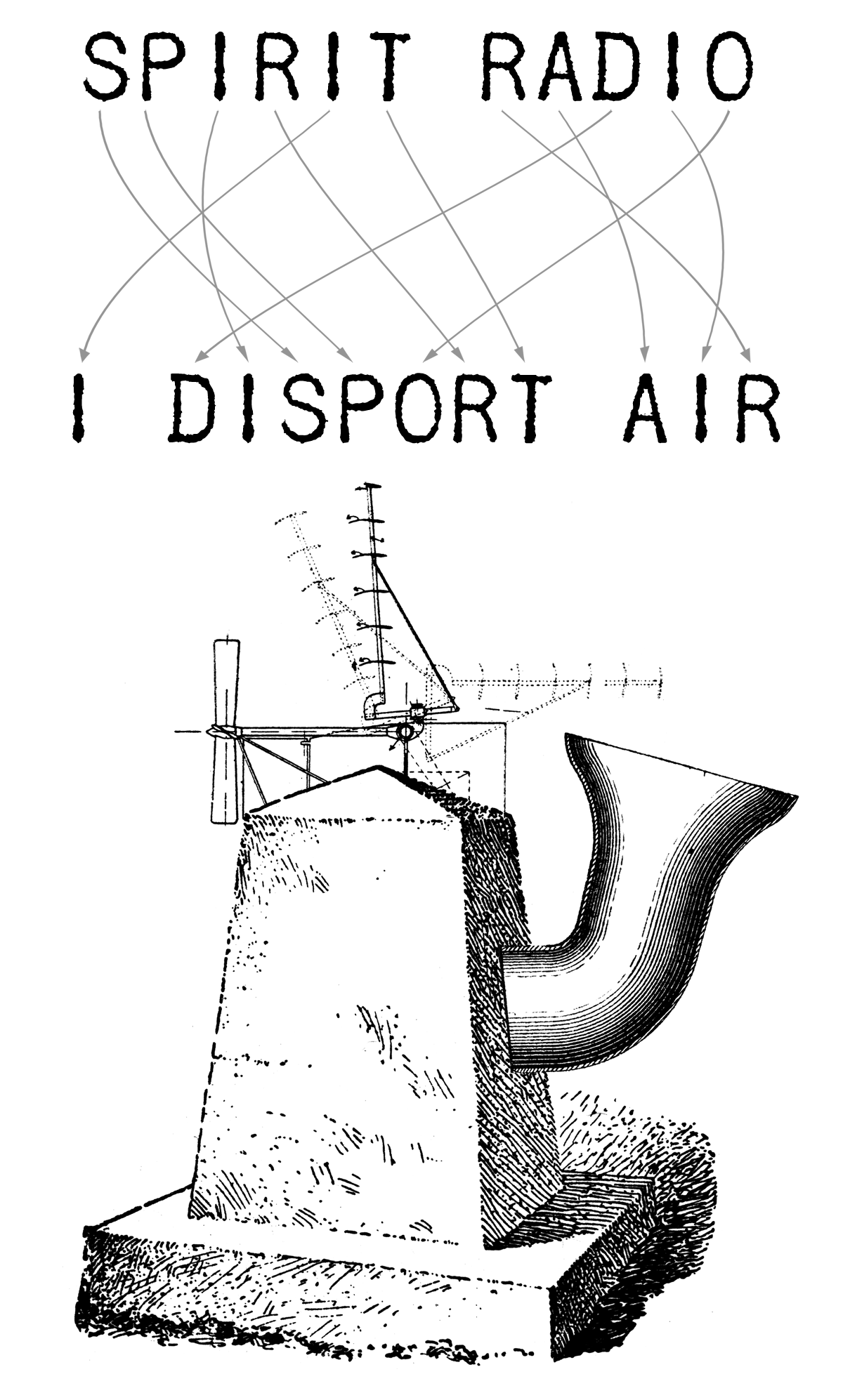 From Prof. Oddfellow's sketchbook: the letters of "spirit radio" rearrange into "I disport air."