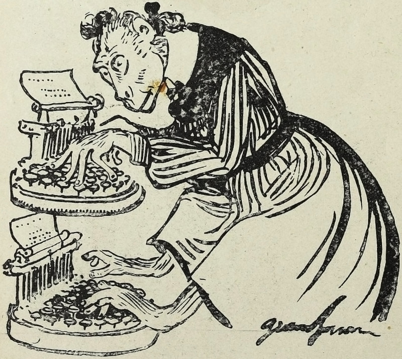 #vintage illustration #anthropomorphism #typewriter #illustration #simian #monkey feet #hands and feet