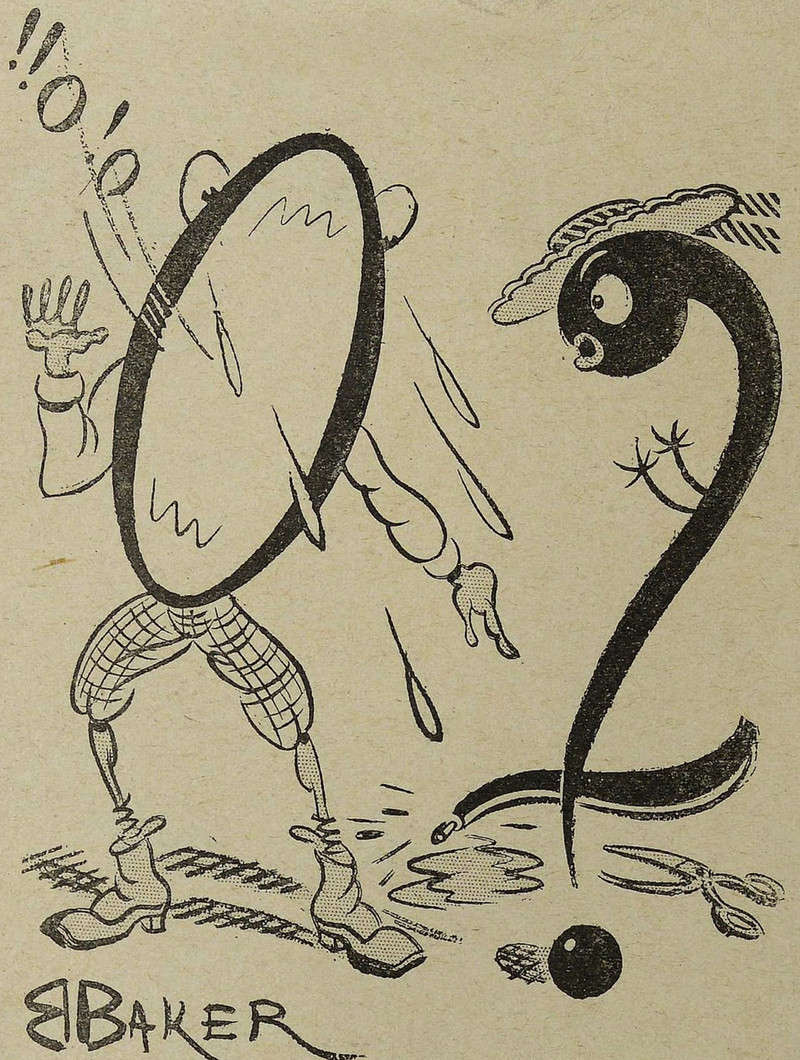 Q loses its tail and cries O!  From Le Rire, 1906.
