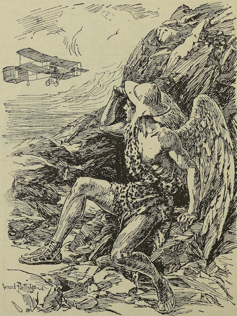 Icarus in leopard-skin.  From Le Rire, 1908.