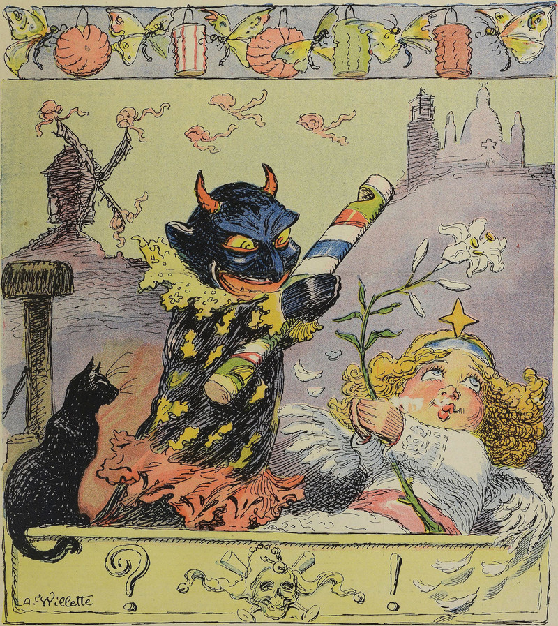 #vintage illustration #demon #angel #cat #illustration #hand puppet