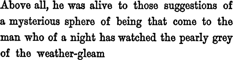 Alive to those suggestions of a mysterious sphere of being that come to the man who of a night has watched the pearly grey of the weather-gleam. From The Feeling for Nature in Scottish Poetry, Vol. 2, 1887.