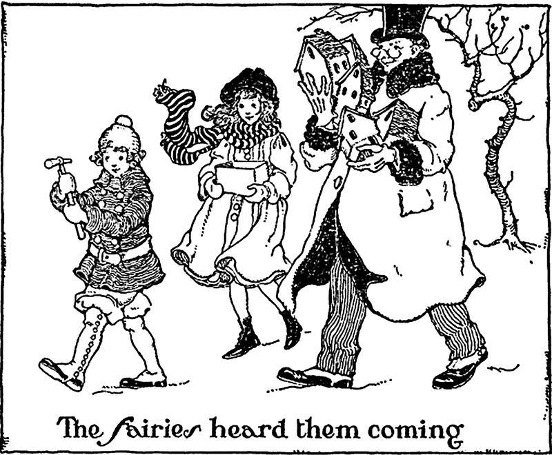 "The fairies heard them coming."  From The Fairy who Believed in Human Beings, written and illustrated by Gertrude Alice Kay, 1918.
