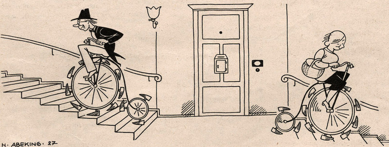 #vintage illustration #invention #penny-farthing #illustration #stair climber #walking bicycle #climbing bicycle
