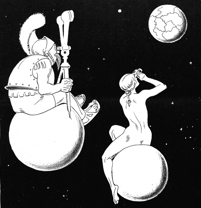 #vintage illustration #earth #outer space #mars #venus #1930s #love and war #venus and mars