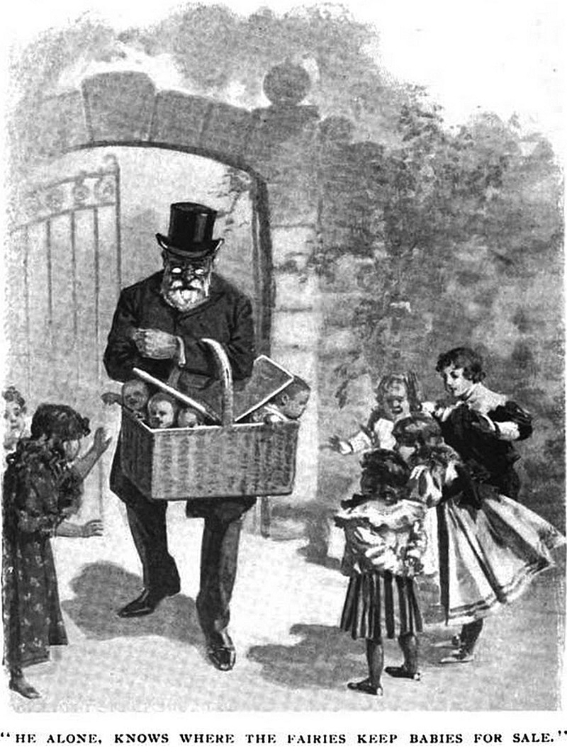 "He alone knows where the fairies keep babies for sale." From Over the Hookah by George Frank Lydston, 1896.
