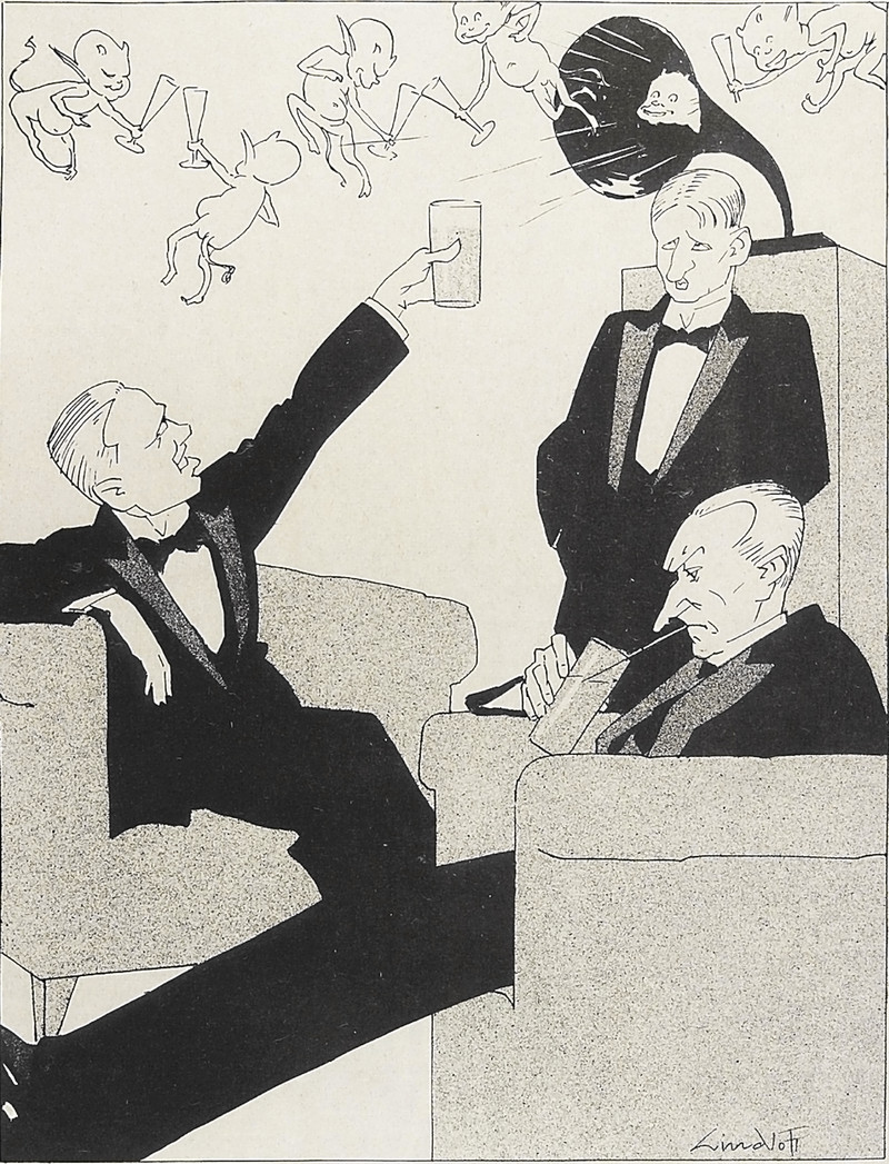 #vintage illustration #demon #drinking #imps #1920s #illustration #a toast #devil's music