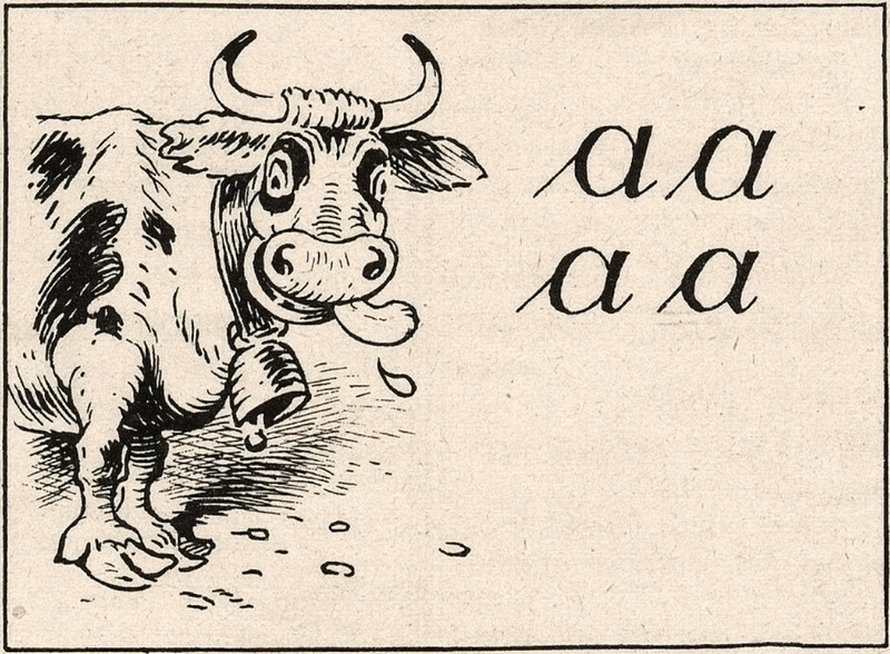 #vintage illustration #letter a #cow
