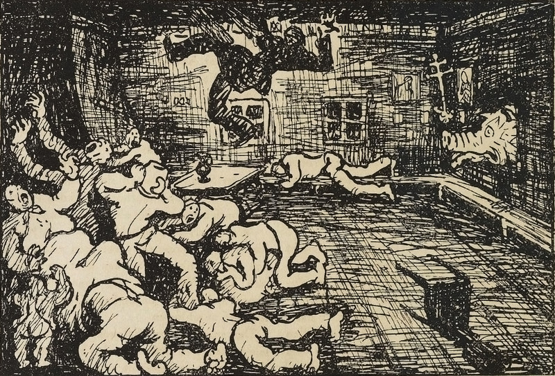 [Inexplicable images from generations ago invite us to restore the lost sense of immediacy.  We follow the founder of the Theater of Spontaneity, Jacob Moreno, who proposed stringing together "now and then flashes" to unfetter illusion and let imagination run free.  The images we have collected for this series came at a tremendous price, which we explained previously.]