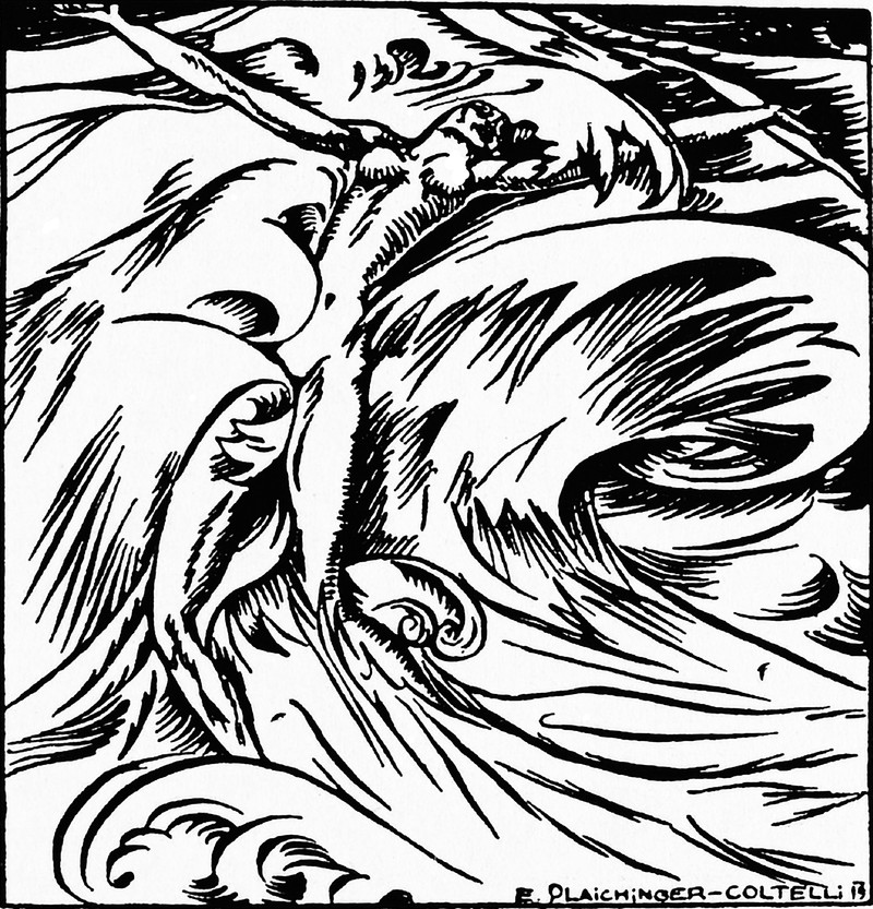 #vintage illustration #ocean #sea #swept away #swimming