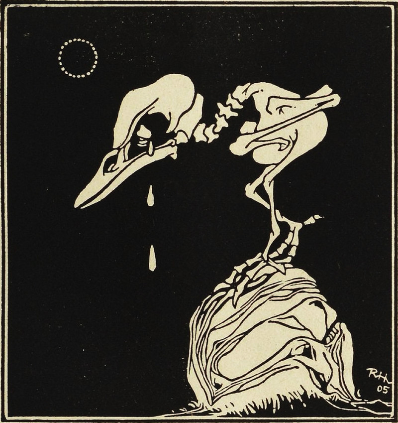 #vintage illustration #skeleton #living dead #crying #crying animal #bird skeleton #art