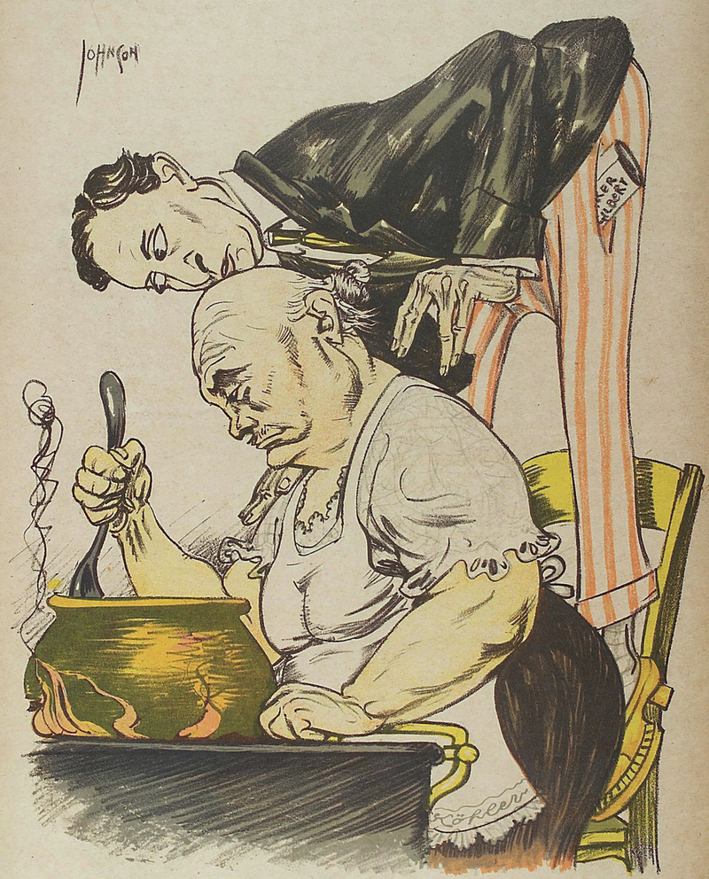 #vintage illustration #cauldron #being watched #surveillance society #too many cooks #over your shoulder
