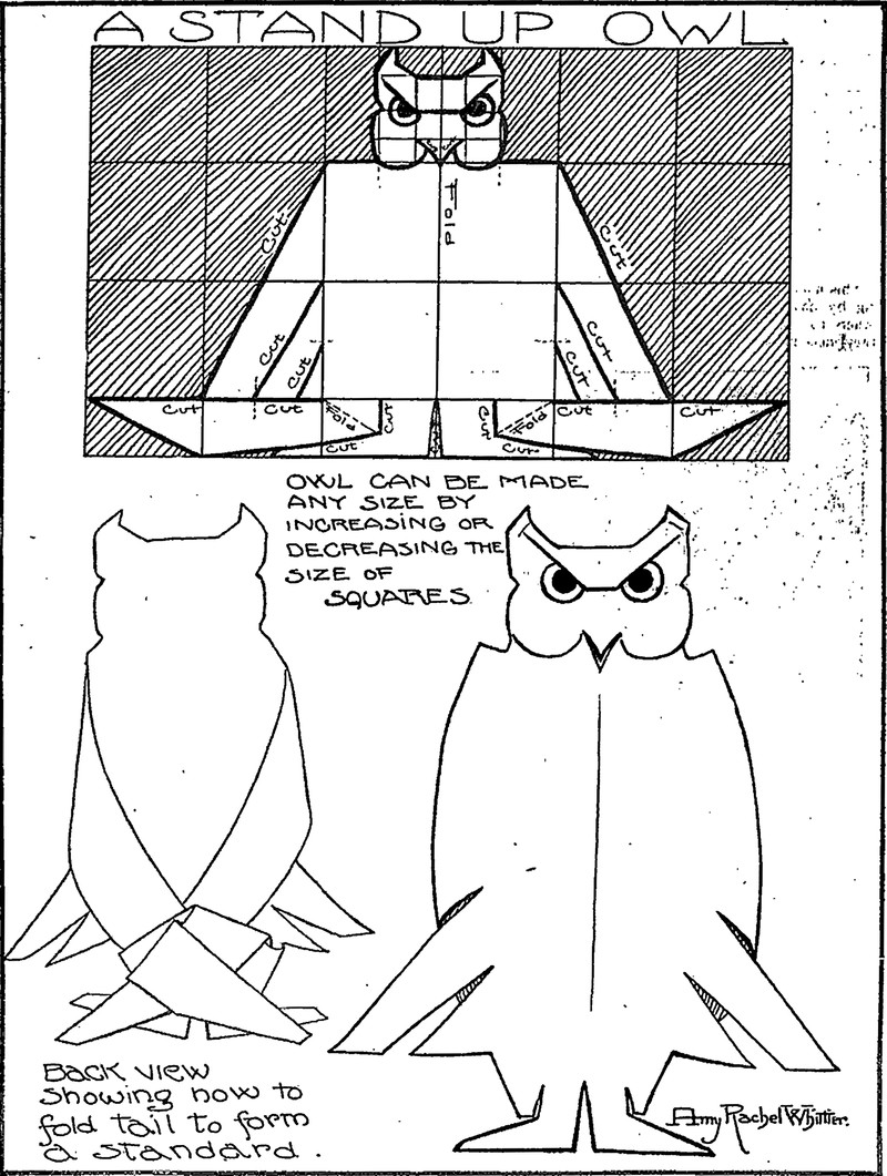 A stand up owl.  From Primary Education, 1917.