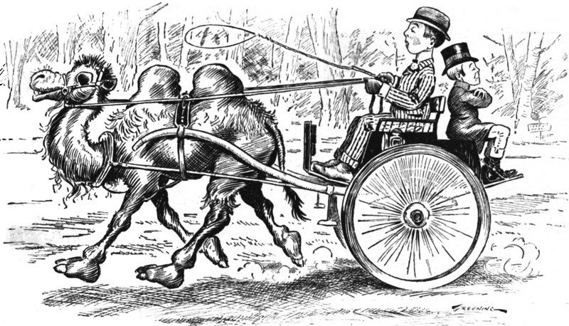 #vintage illustration #camel #carriage #tiny man
