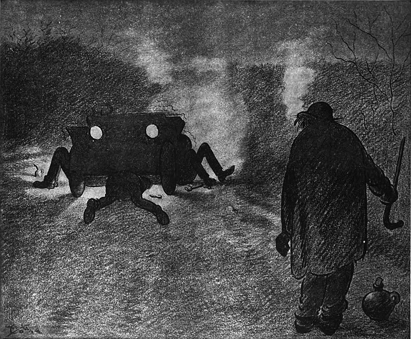 #vintage illustration #monster #night #vintage car #car
