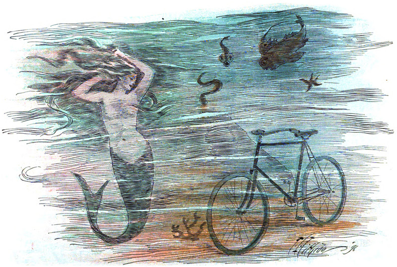 #vintage illustration #mermaid #bicycle #under the sea