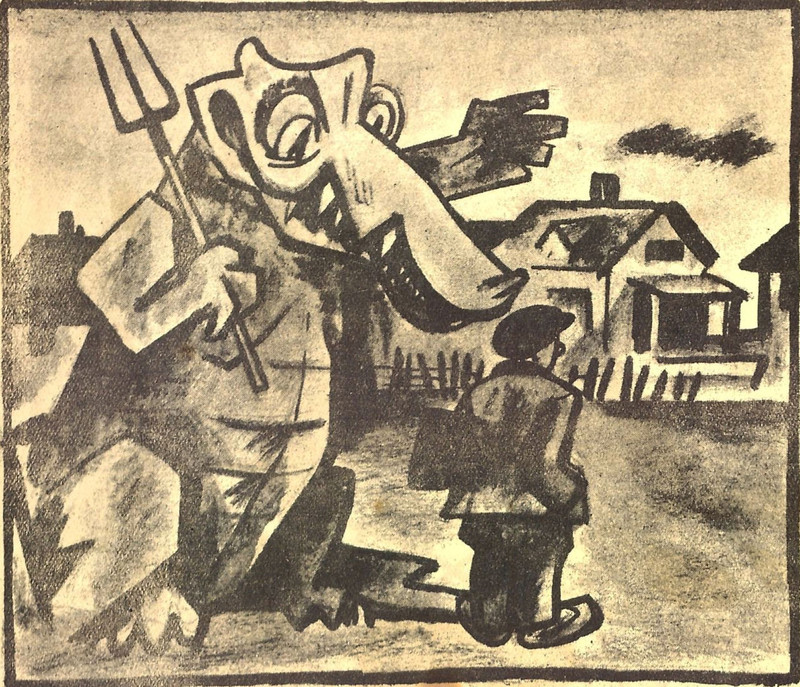 #vintage illustration #pitchfork #crocodile #giant crocodile