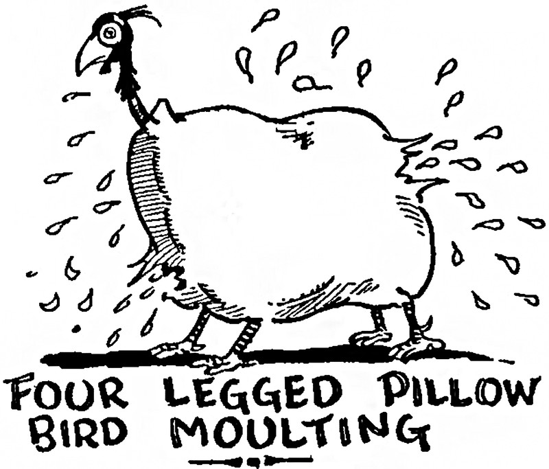 "Four legged pillow bird moulting."  From Judge, 1927.