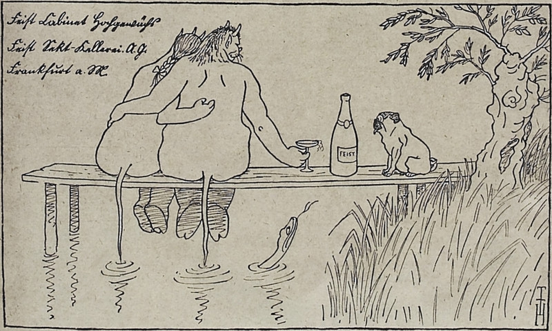 #vintage illustration #vintage ad #demon #satyr #champagne #ad