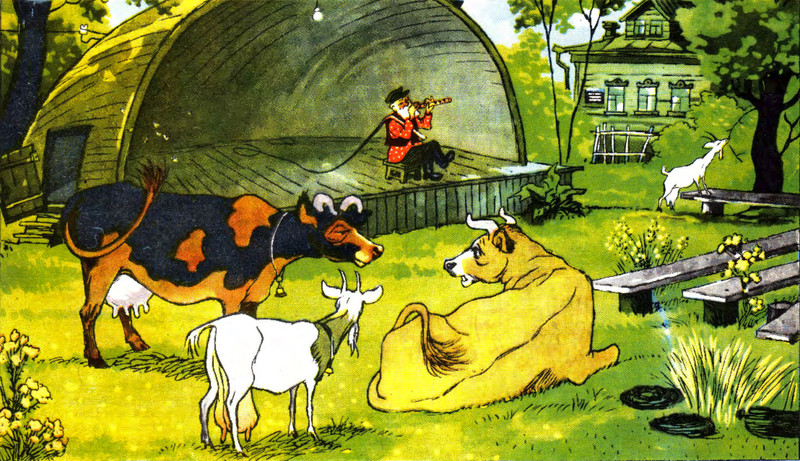 #vintage illustration #cow #animals #goat #music #farm animals
