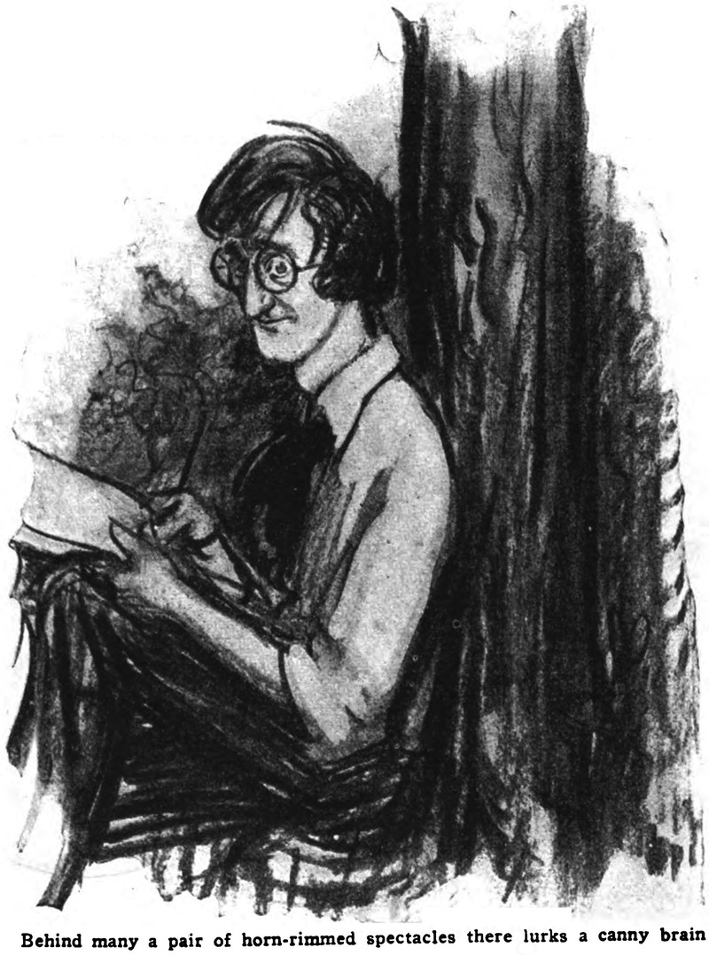 "Behind many a pair of horn-rimmed spectacles there lurks a canny brain."  From The Judge, 1922.