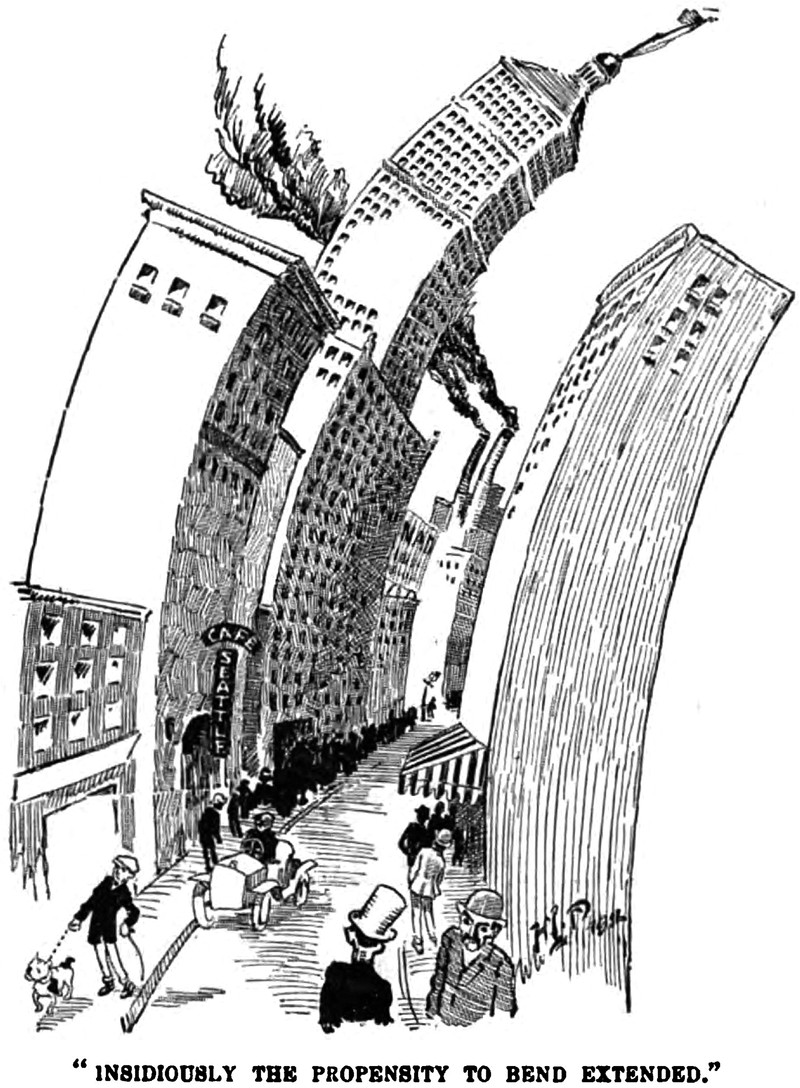 "Insidiously the propensity to bend extended."  From The Judge, 1912.