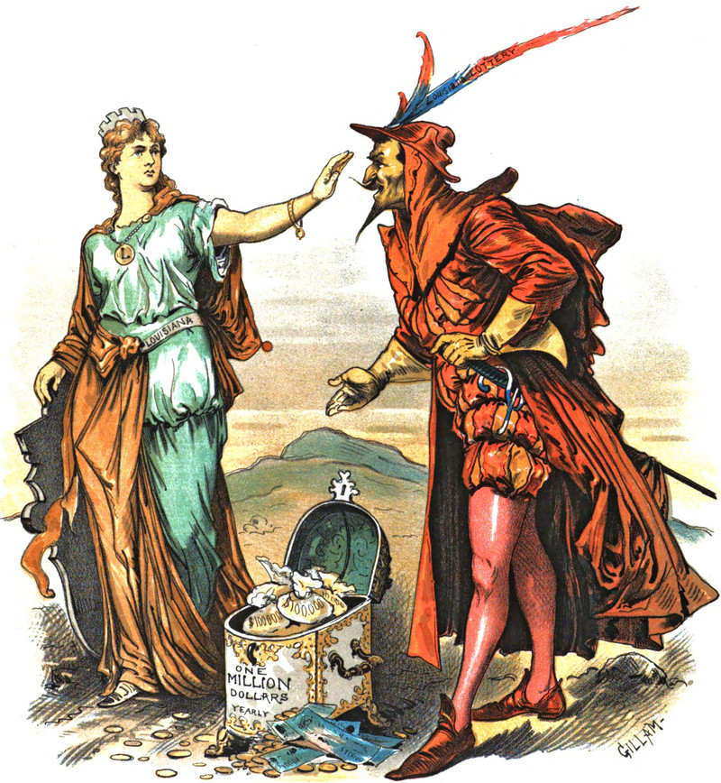 #vintage illustration #political cartoon #temptation #devil #lottery #louisiana lotter