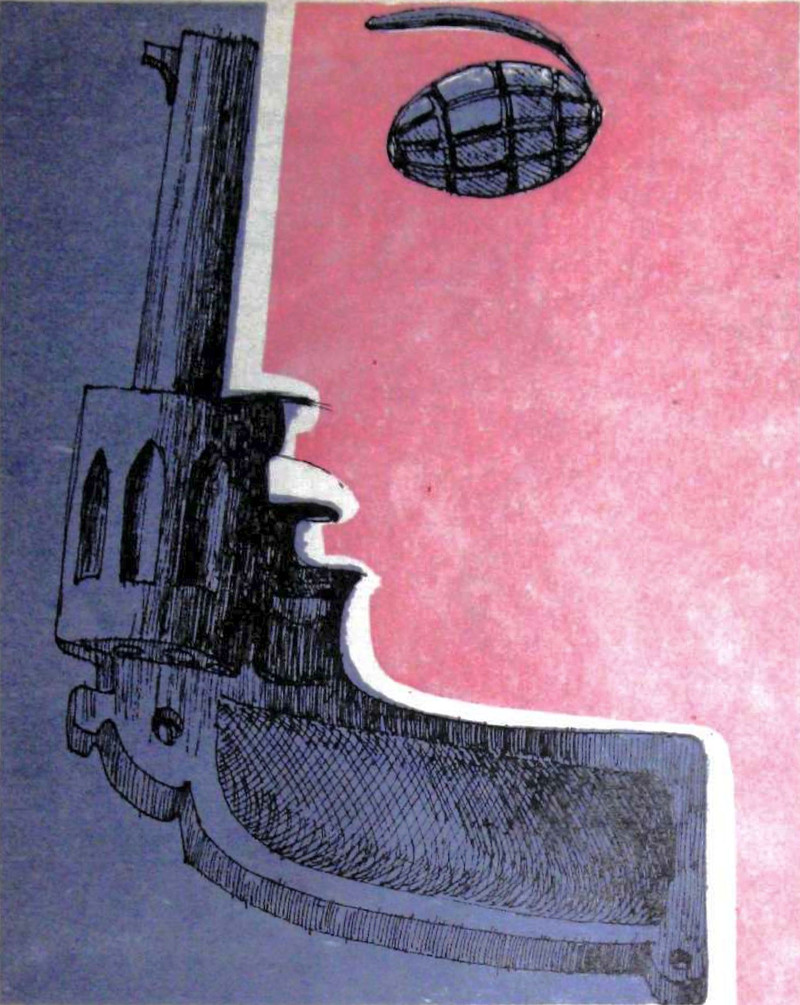 #vintage illustration #gun #faces in things #grenade