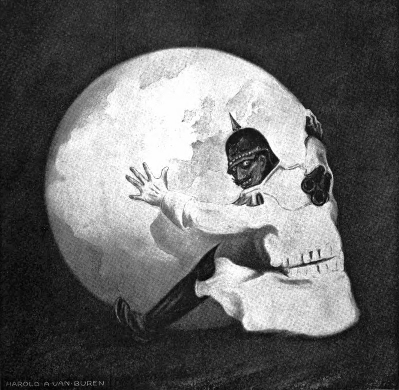 The world / a skull.  An optical illusion from The Judge, 1917.